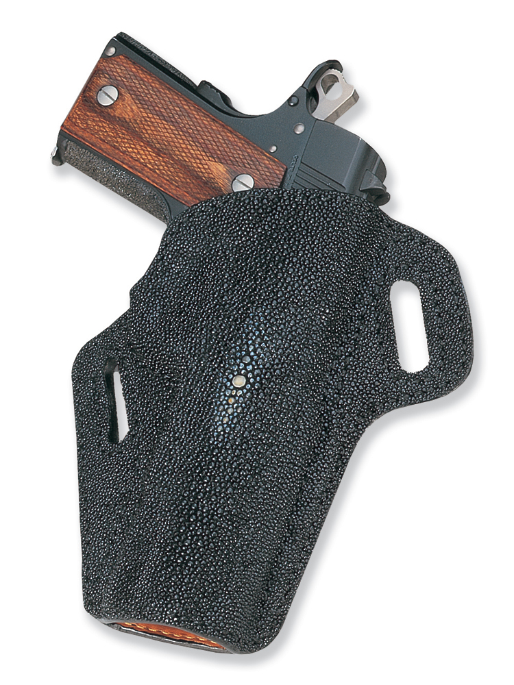 Galco Shark Holster Galco is one of the largest holster manufacturers, and they have a large lineup of exotic options. This black tigershark rig is a popular option.