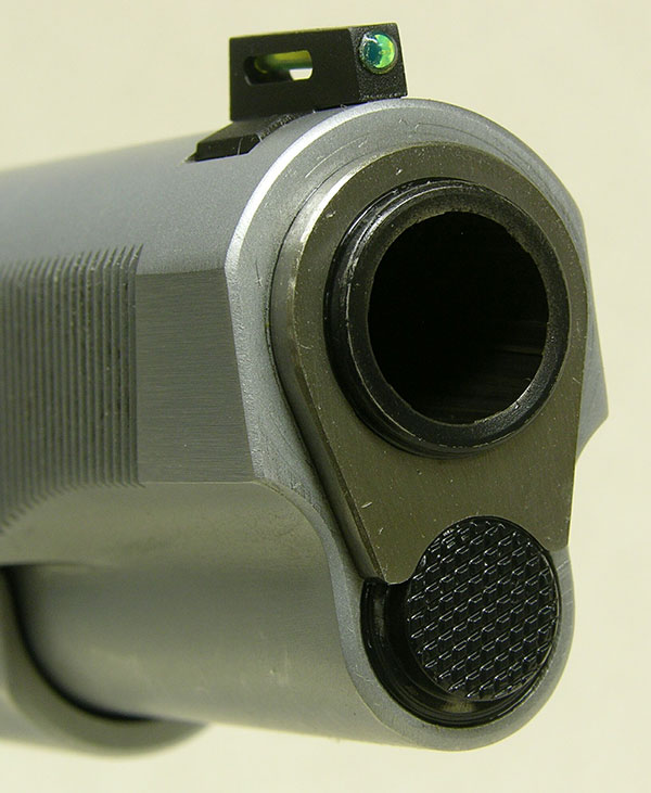 As for Baer's NM barrels, his emphasis on accuracy for his guns really shows. They're built from 4350 steel, and all critical areas are made oversize to allow proper individual precision fitting by other pistolsmith customers as well as Baer's own crew of expert pistol builders. The rear locking lug is also slightly oversized to allow you to obtain a central firing pin hit. The smoothness and consistency of the bore and rifling are remarkable.