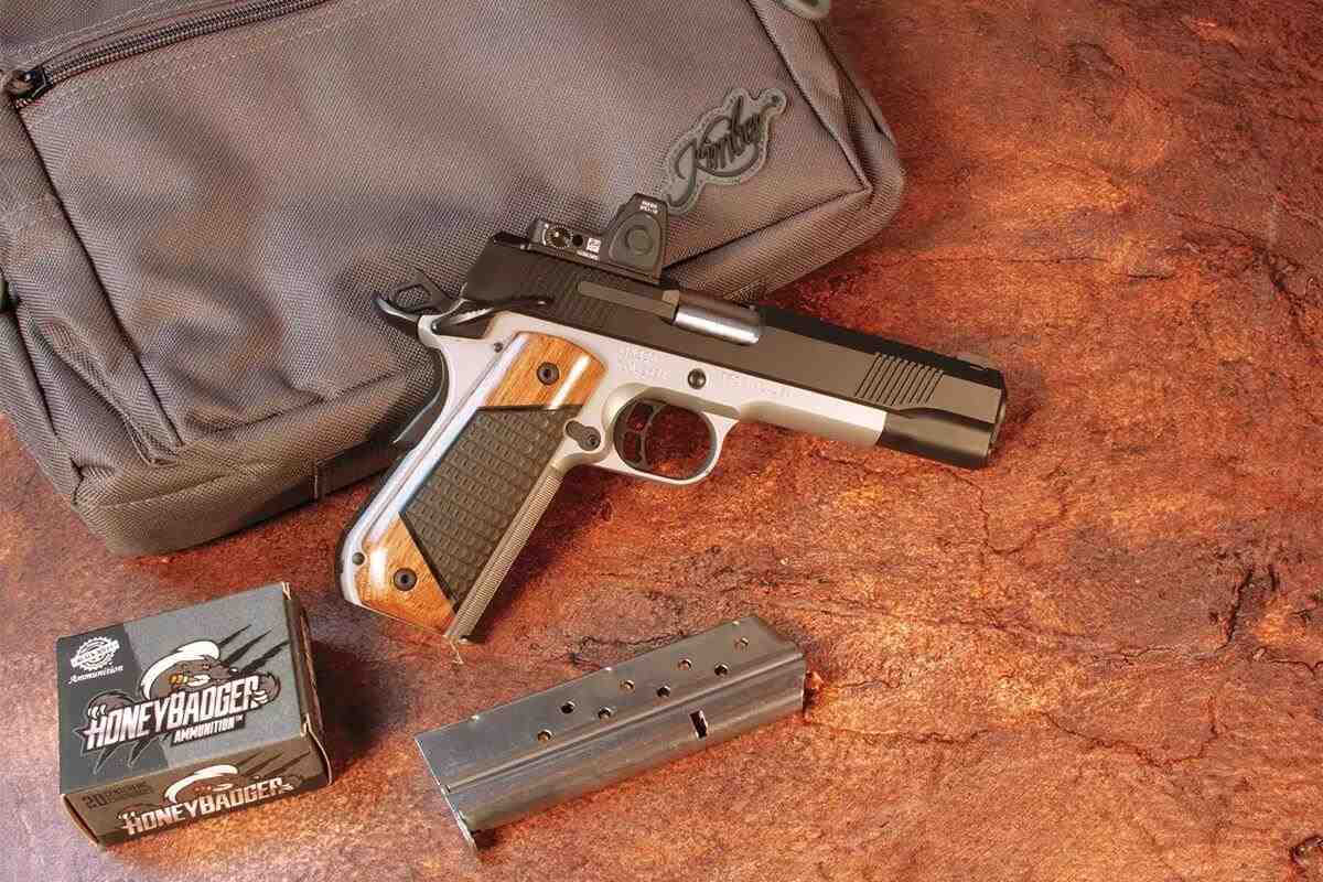 With the new Next Gen models , the Alabama-based company is delivering a Government-size 1911 in both .45 ACP and 9mm Luger that is within the financial reach of most folks. There are two base models —a stainless gun and a two-tone—with suggested retail prices right at $1,000. For the more well-heeled there’s also an embellished custom .45 version selling for twice that.