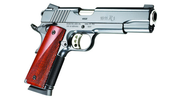 R1 Carry , features a 5-inch barrel along with an ultra smooth trigger and checkered walnut grips. Chambered in .45 Auto, the R1 Carry includes seven- and eight-round magazines.