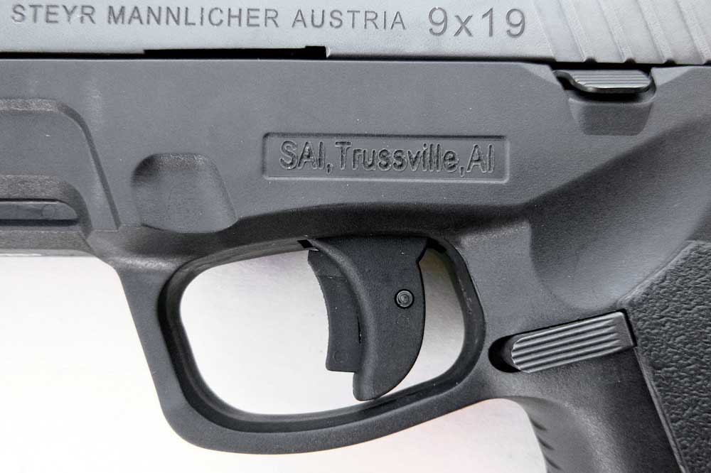 The L9-A1 employs Steyr's Reset Action trigger, which partially compresses the firing pin spring when the slide is in battery. The magazine release is user-swappable to either side.